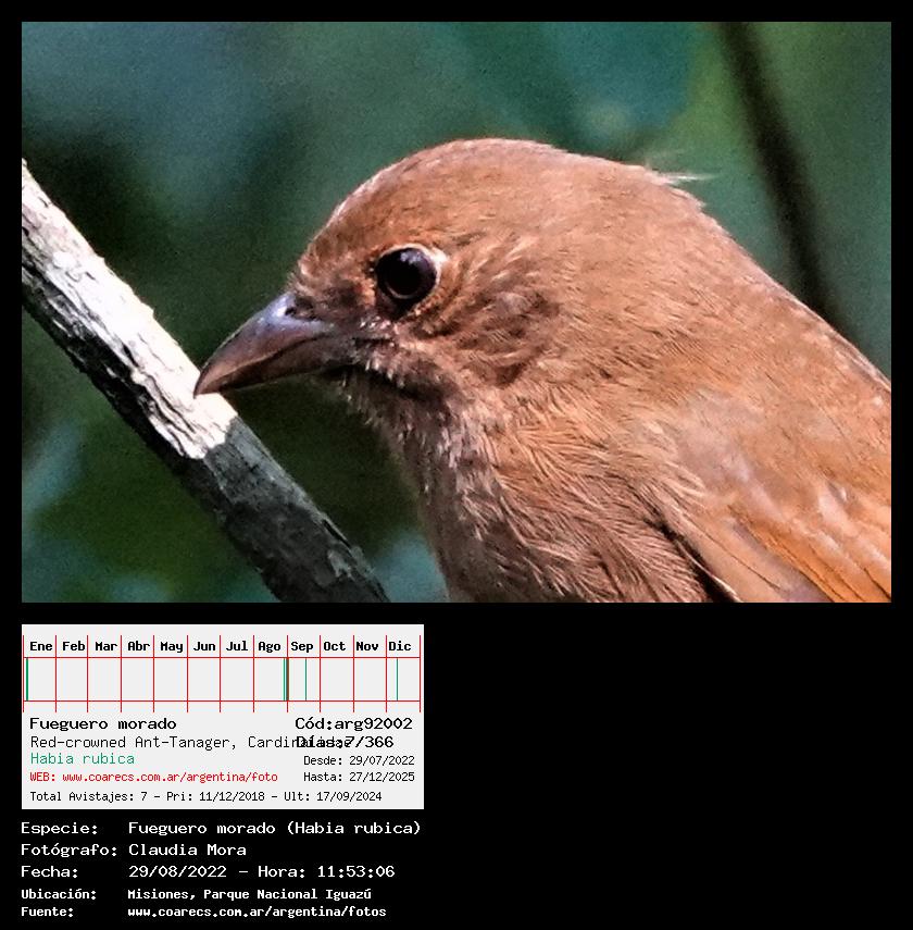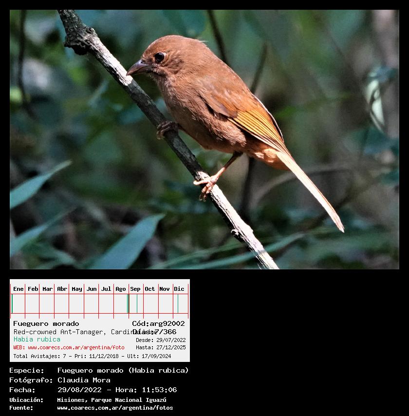 [arg92002] - Fueguero morado - Red-crowned Ant-Tanager -