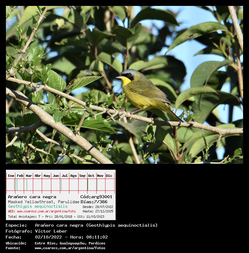 [arg93001] - Arañero cara negra - Masked Yellowthroat -