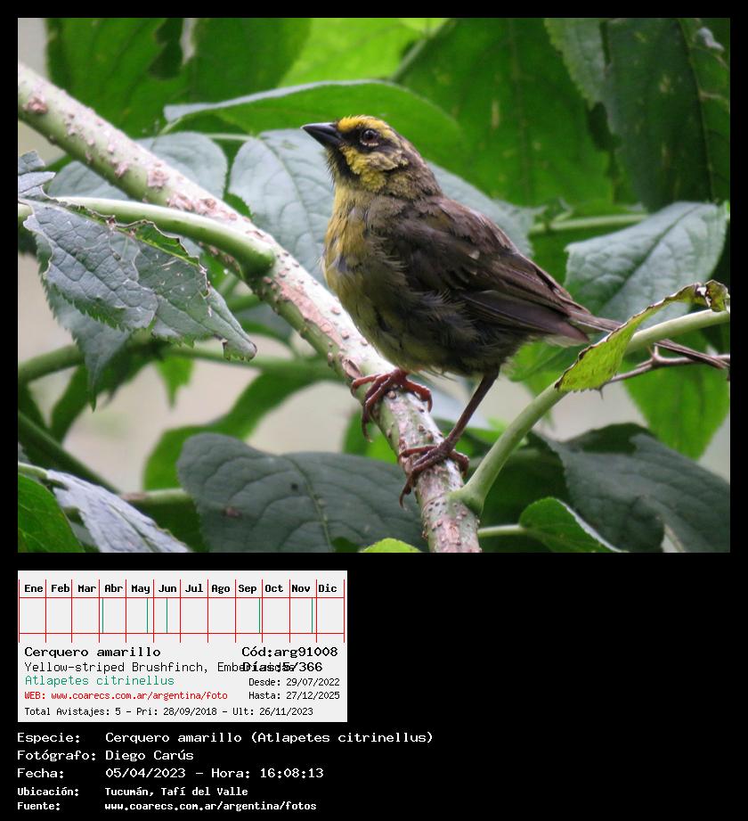 [arg91008] - Cerquero amarillo - Yellow-striped Brushfinch -