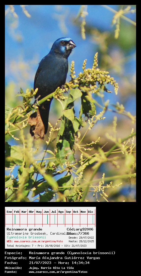 [arg92006] - Reinamora grande - Ultramarine Grosbeak -