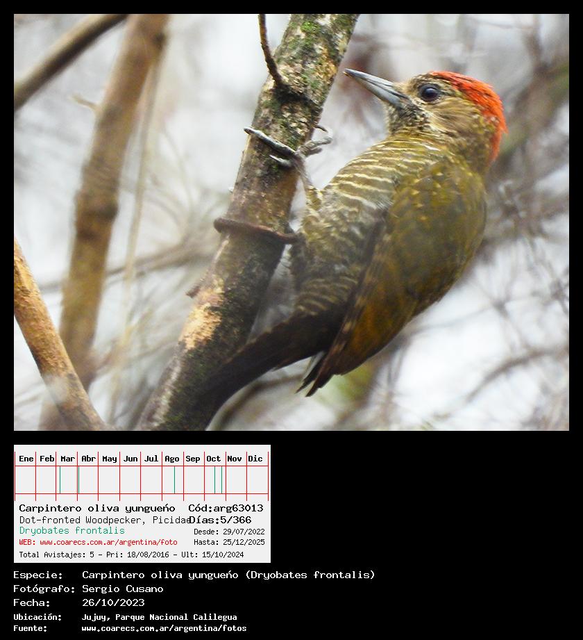 [arg63013] - Carpintero oliva yungueño - Dot-fronted Woodpecker -
