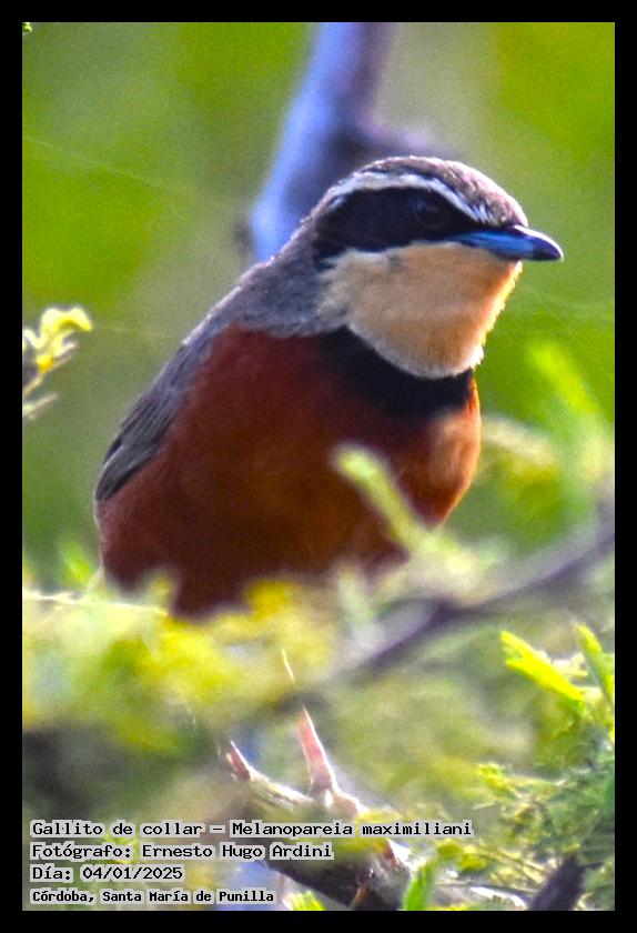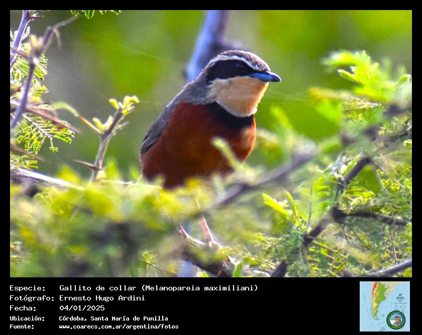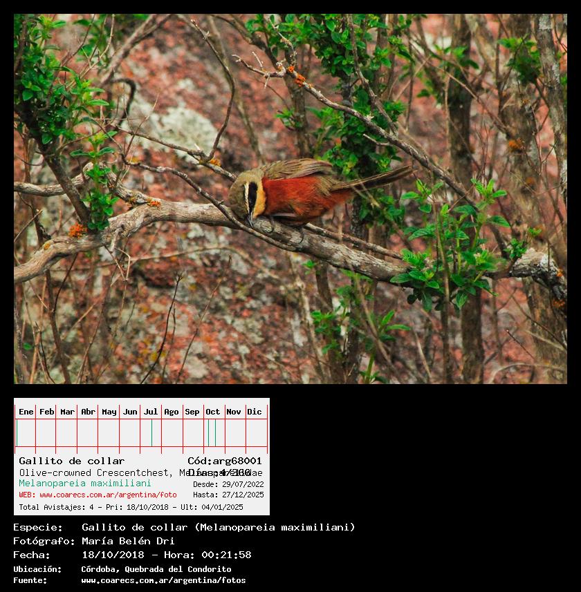 [arg68001] - Gallito de collar - Olive-crowned Crescentchest -