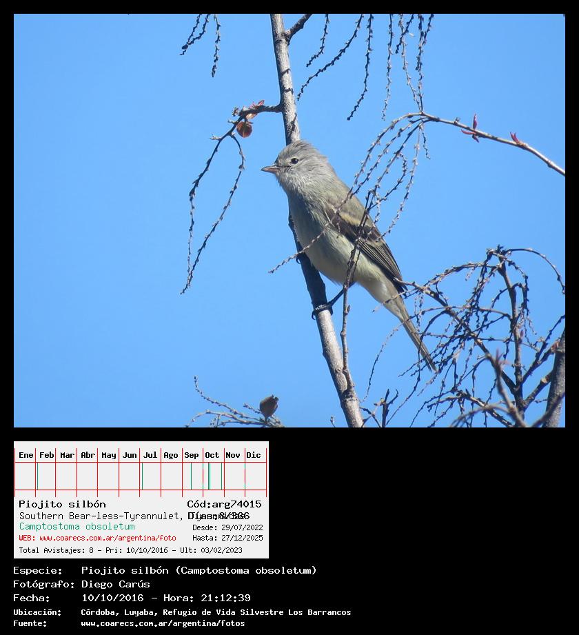 [arg74015] - Piojito silbón - Southern Bear-less-Tyrannulet - (Camptostoma obsoletum)