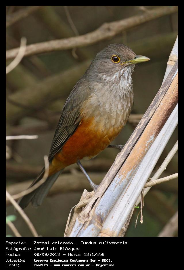 | 13 |  | 7501 - Zorzal colorado - (Turdus rufiventris) |