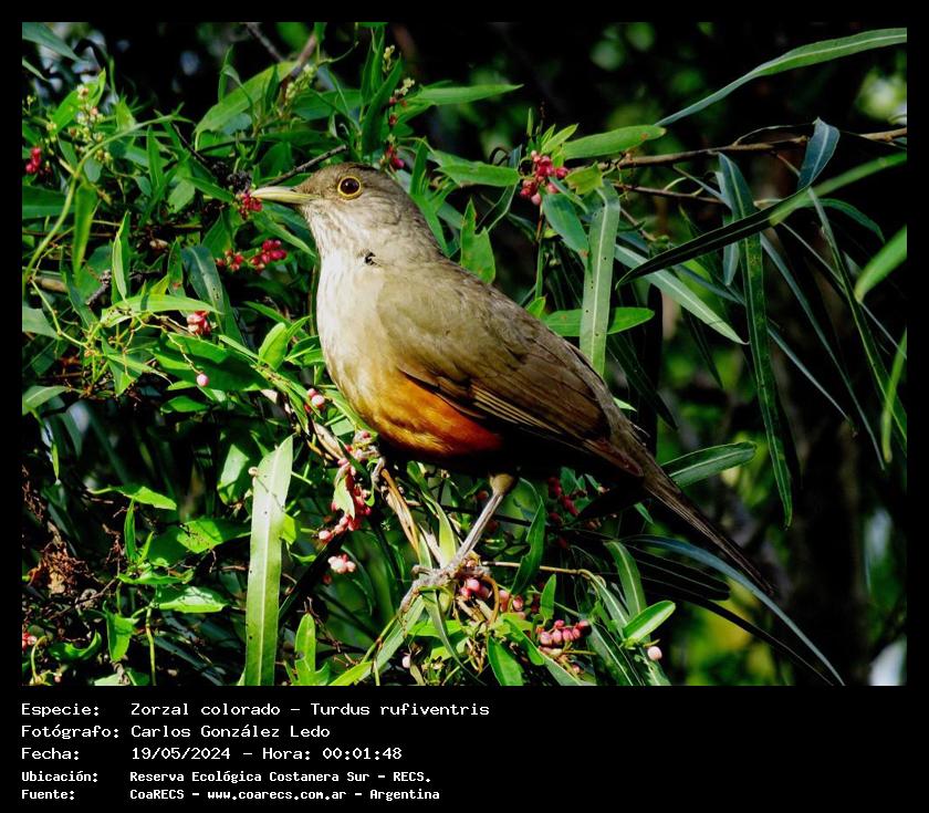 | 13 |  | 7501 - Zorzal colorado - (Turdus rufiventris) |