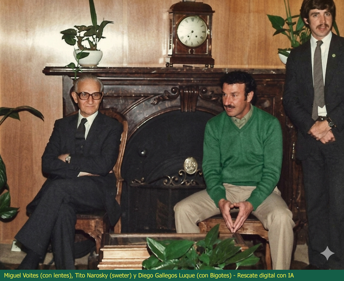 En la foto 1 se los ve a Miguel Woites (de lentes), a Tito Narosky (con sweater celeste -se ve verde en la foto-) y a Diego Gallegos Luque (de bigotes).